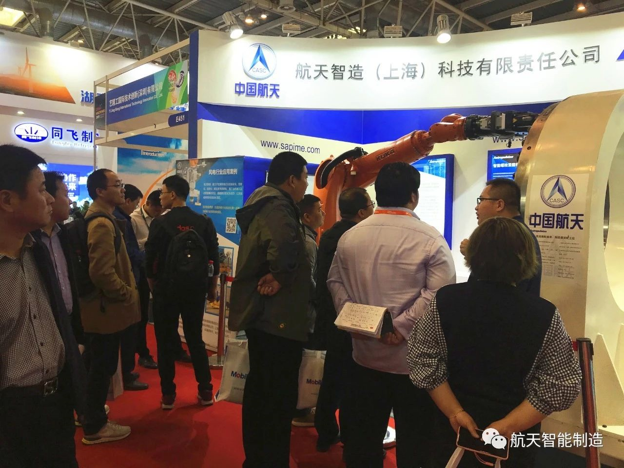 此次展會(huì),航天智造攜機(jī)器人搭載拉伸器自動(dòng)化緊固螺栓現(xiàn)場作業(yè)展示,以及智慧物流重載搬運(yùn)車和其他非標(biāo)自動(dòng)化項(xiàng)目視頻展示,展現(xiàn)了航天智造在風(fēng)電行業(yè)的解決方案和綜合能力。憑借產(chǎn)品的優(yōu)良性能和領(lǐng)先的自動(dòng)化設(shè)計(jì)理念,更得益于行業(yè)客戶對(duì)航天智造的肯定和認(rèn)可,開展第一天航天智造展臺(tái)就吸引了眾多用戶、整機(jī)廠和風(fēng)電行業(yè)的專家蒞臨參觀,嘉賓和航天智造工作人員進(jìn)行了氣氛熱烈的交流、積極探討,深入溝通未來產(chǎn)品、技術(shù)和行業(yè)發(fā)展的新方向。