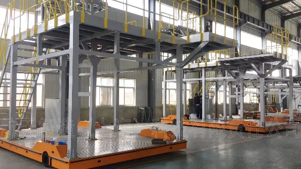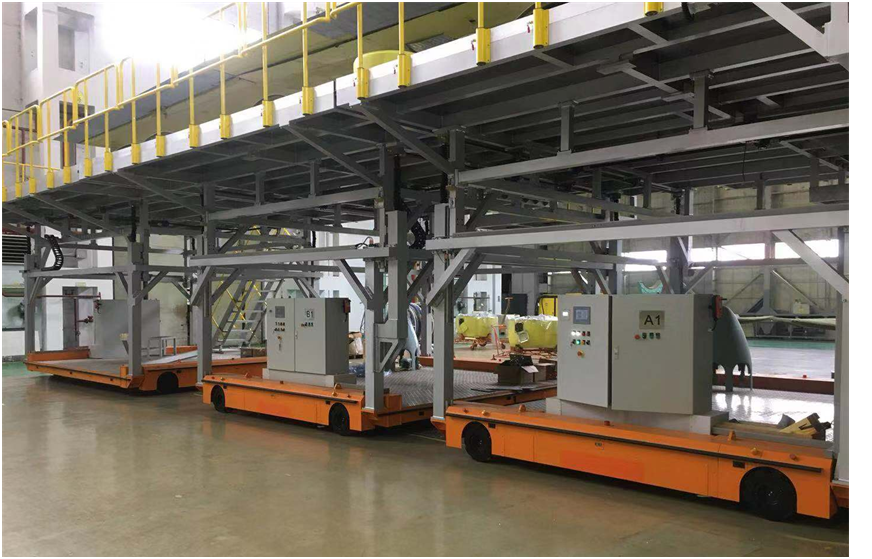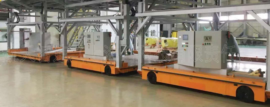 比如用于軌道車輛整車轉(zhuǎn)運的“2x30T全向舵輪車”、用于衛(wèi)星艙轉(zhuǎn)運的“3x40T全向舵輪車”、用于動車車體底架轉(zhuǎn)運的“2x5T麥克納姆輪式車”、用于動車車底線槽轉(zhuǎn)運的“2x2T麥克納姆輪式車”、用于機(jī)塢轉(zhuǎn)運的的“3x5T麥克納姆輪式車”,都使生產(chǎn)工藝發(fā)生了革命性的變化。