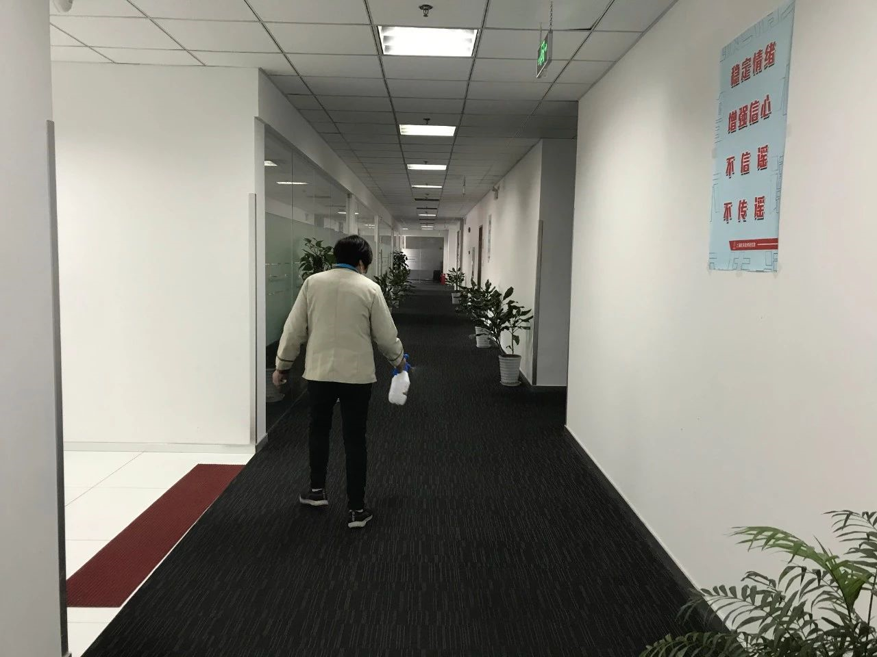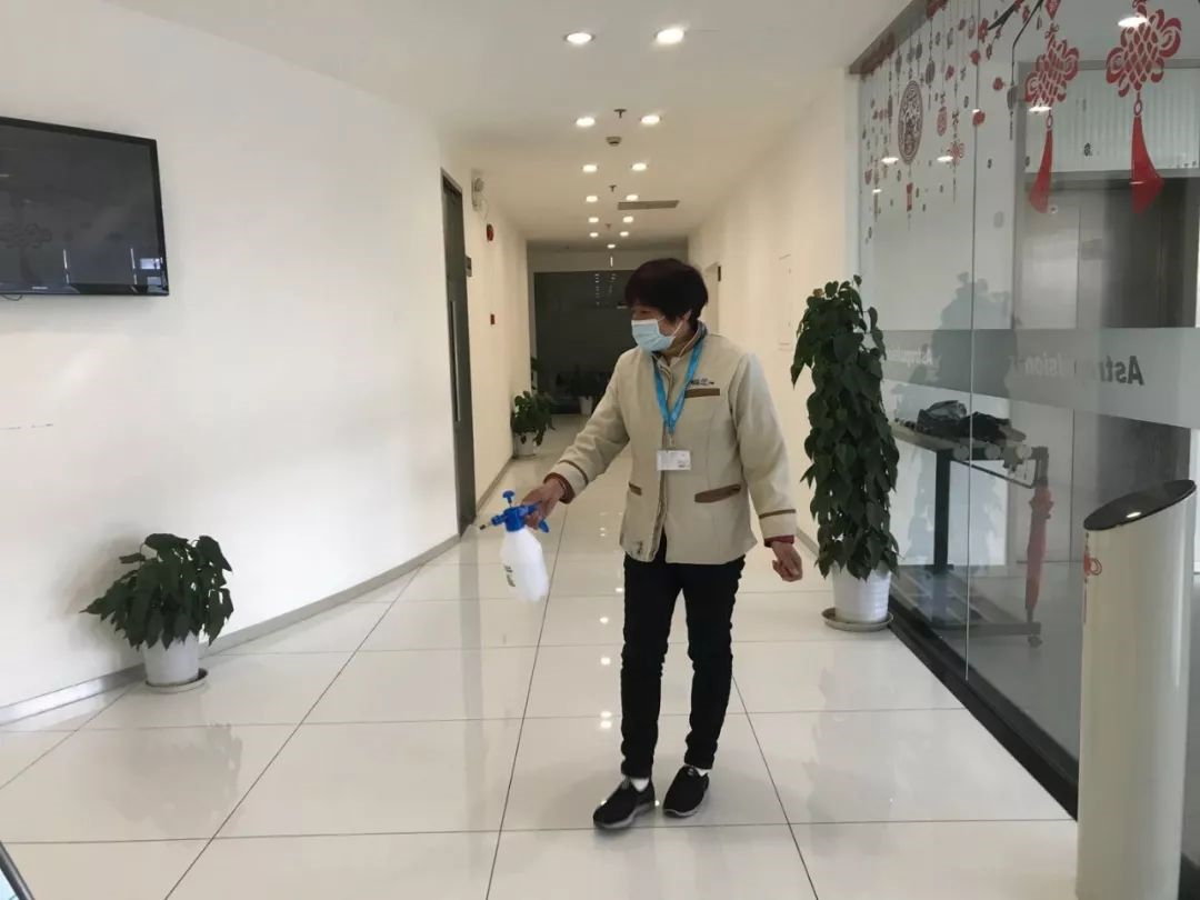 辦公區(qū)域內(nèi)保持通風(fēng),由保潔人員定時(shí)對(duì)電梯、廁所、大廳、會(huì)議室、走廊、樓梯等公共區(qū)域進(jìn)行噴灑消毒。